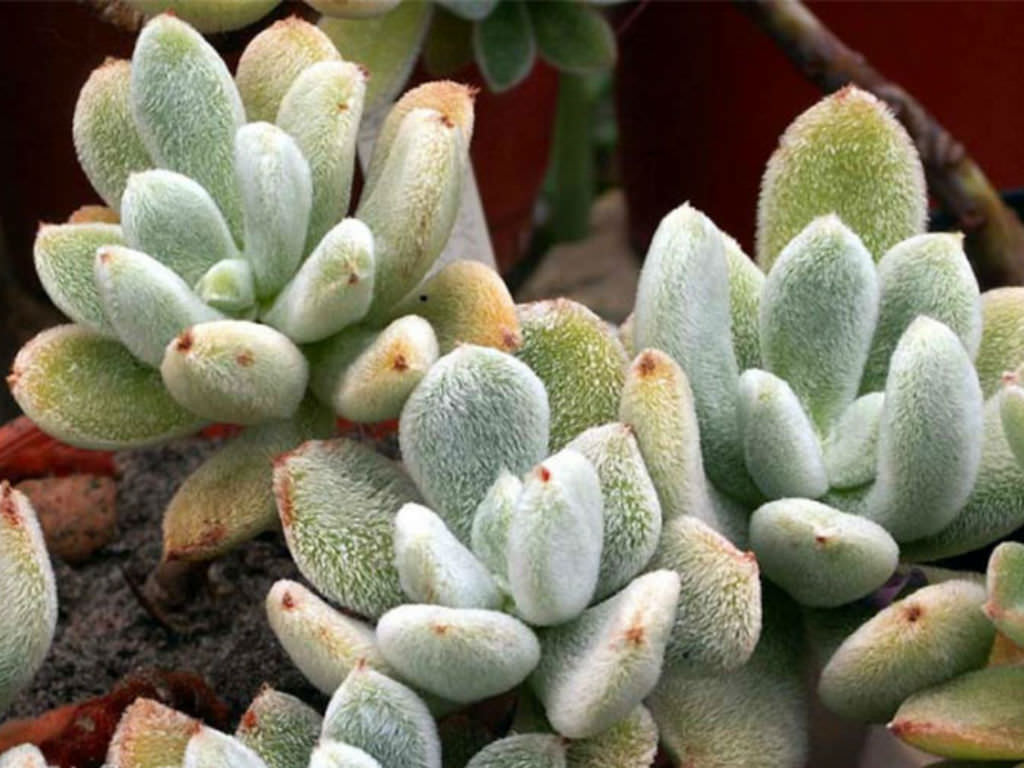 Kalanchoe Bracteata– Ovate silvery leaves with small white flowers; also known as ‘silver spoons’ or ‘silver teaspoons’