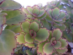 Kalanchoe Tetraphylla– Large round stalk-free leaves with greenish waxy flowers
